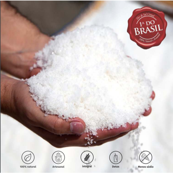 FLOR QUE NÃO SE CHEIRA! Afinal, quem vai cheirar sal, não é mesmo?! haha Desde 1974, lá em Mossoró, no Rio Grande do Norte, a Cimsal tem se dedicado à colheita do sal. A sua flor de sal se destaca das outras por ter o processo 100% natural e artesanal. Os raros cristais são cuidadosamente coletados manualmente em períodos específicos nas superfícies das salinas e secados naturalmente ao sol. Além de manter todo o aroma do mar, contém mais de 80 minerais e oligoelementos, e apresenta baixo teor de cloreto de sódio. É arretado demais! É uma ótima opção para trazer uma crocância a mais, um toque de delicadeza, e claro, intensificar levemente o sabor. Digno de um chef! O que é o que é que vem dentro da embalagem? 1 lSaliere Tradicional 65g Gourmet.