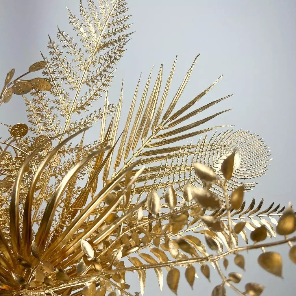 Flores Artificiais Douradas Folhas Diversas Para Decoração De Natal Casa Casamento - JZ803068