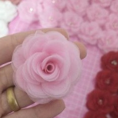 flor delicada em voil para aplicação medidas aproximada 6cm ideal para confecçao de acessorios, decoraçao de festa e eventos entre outros.
