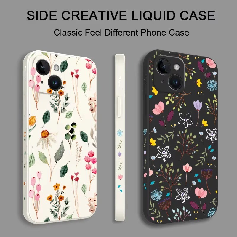 Flores Frescas Coloridas Deixa A Capa Do Telefone Para iPhone 16 11 12 13 14 15 Pro Max XR X XS 14 15 7 8 Plus SE 2020 Mini Padrão Floral Lateral Traseira Reta Macia