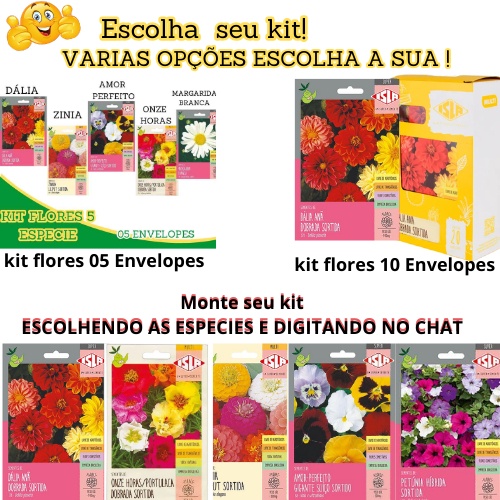 | Kit 10 Sementes de flores flor variadas Feltrin | R$ 34,20 | 5% | 4.8/5 | 31 |