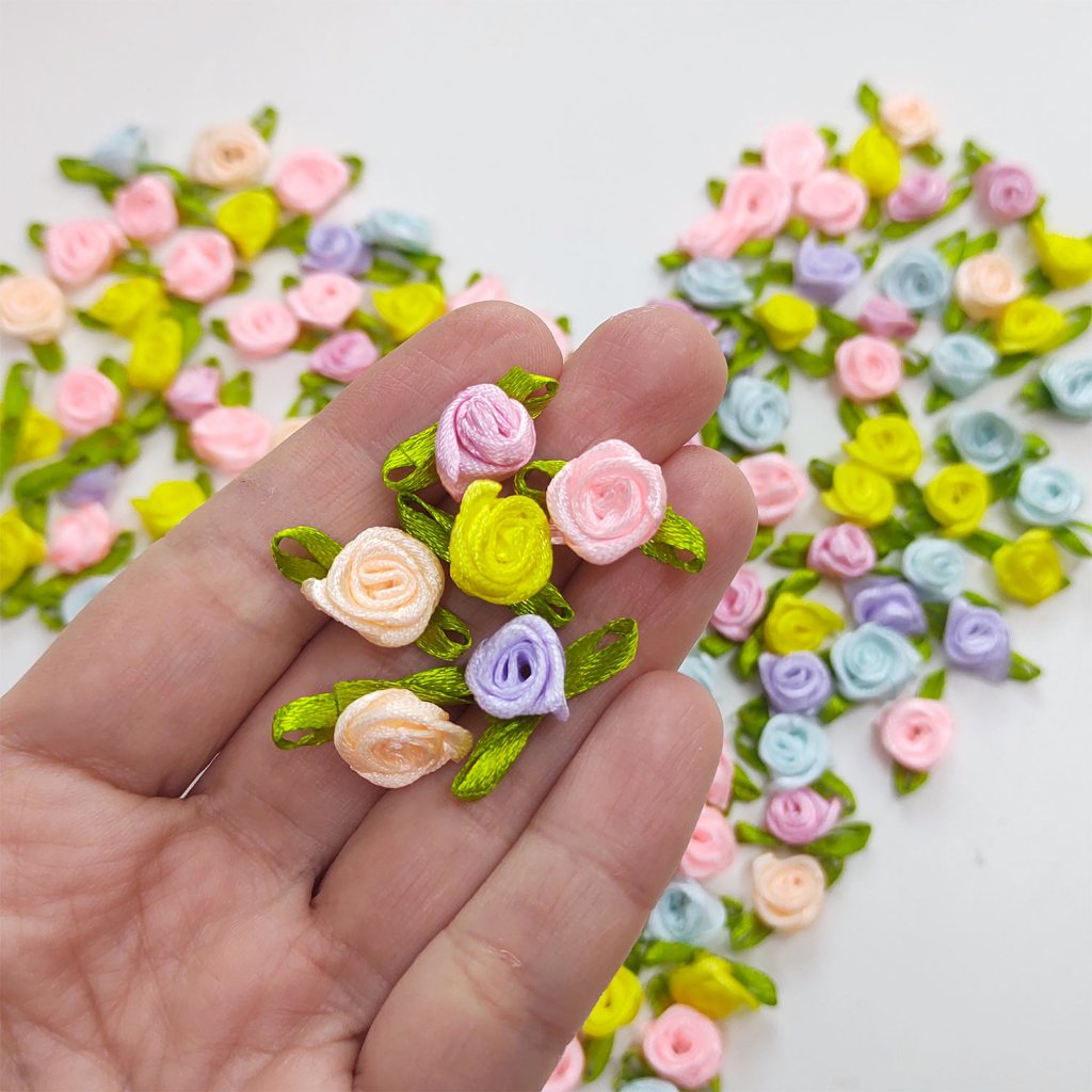 Florzinha de Fita com Folha 50 unidades rococó Flor Aplique Boneca Artesanato