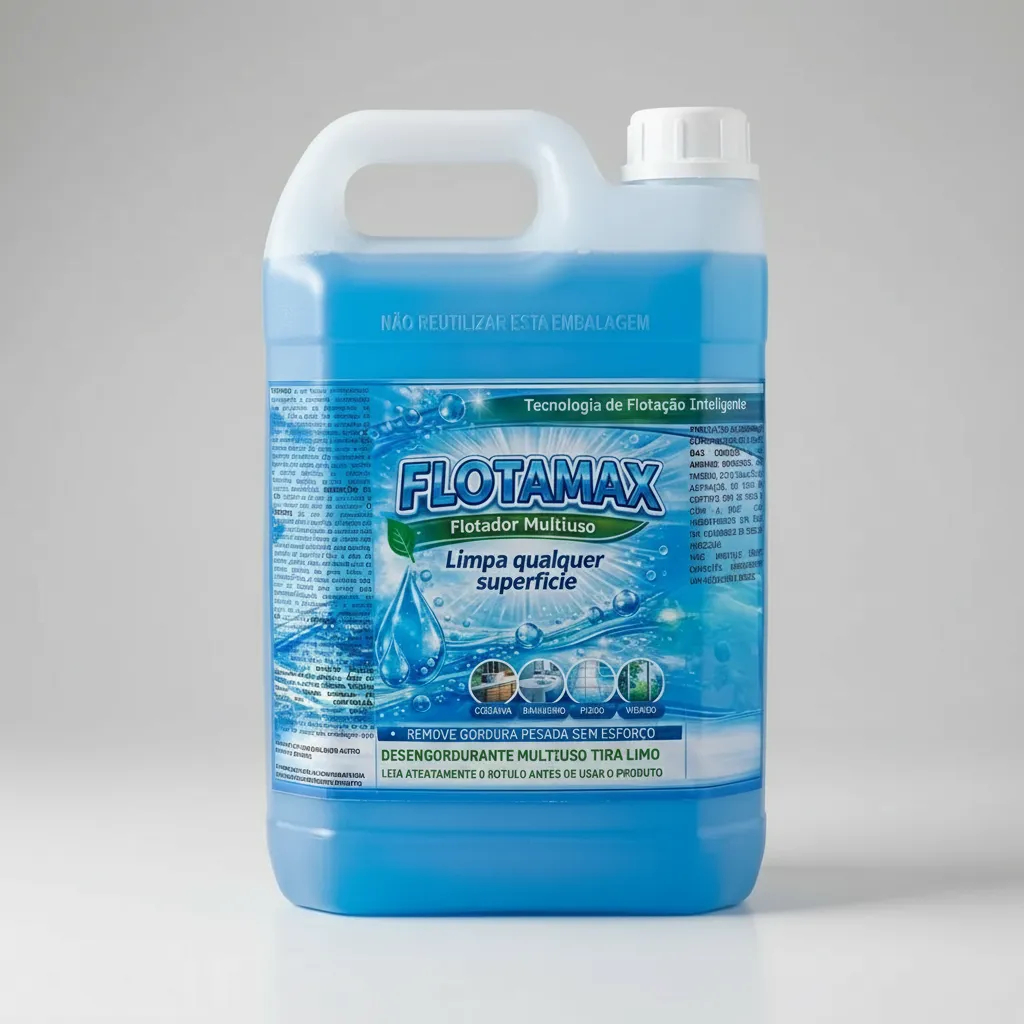 FLOTAMAX 5L – LIMPADOR MULTIUSO CONCENTRADO Descrição: O FLOTAMAX é um limpador multiuso concentrado de alta eficiência, desenvolvido para remover sujeiras, gordura e resíduos com facilidade. Pode ser utilizado em diversas superfícies, oferecendo praticidade e economia no dia a dia. Indicações de uso: Ideal para limpeza de banheiros, cozinhas, fogões, pias, azulejos, pisos e até veículos. Diluição recomendada: • Sujeira pesada: 1:1 • Sujeira média: 1:5 • Sujeira leve: 1:10 Benefícios: • Alto rendimento (produto concentrado) • Remove gordura com facilidade • Uso versátil (interno e externo) • Economia na diluição Conteúdo: • 5 Litros Modo de uso: Diluir o produto conforme o nível de sujeira, aplicar na superfície desejada, esfregar se necessário e enxaguar ou remover com pano úmido. Observações: Produto concentrado. Utilize conforme orientação de diluição.