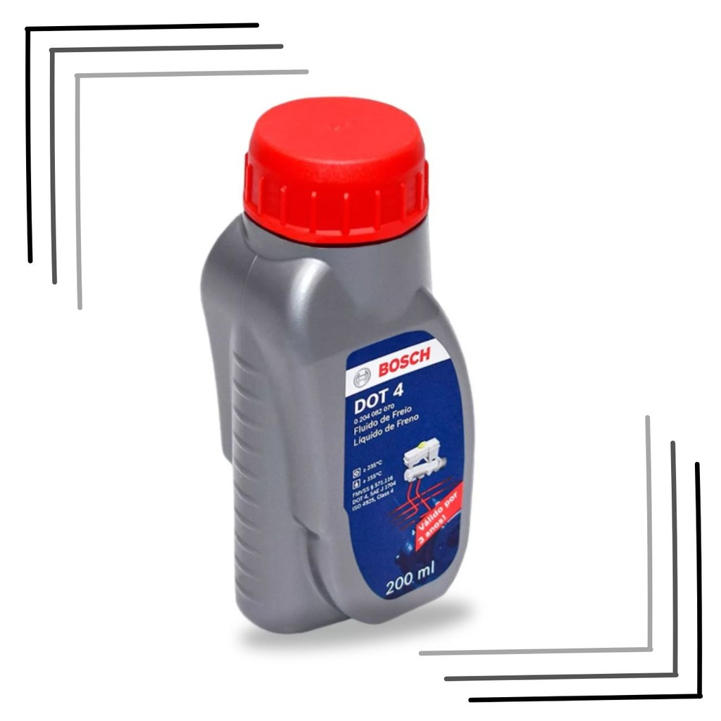 Fluido de Freio 200 ML !!!! O fluido de freio tem papel fundamental no sistema de frenagem do veículo, sendo responsável por garantir a sua eficiência. Ele tem a função de transferir a pressão exercida no pedal de freio para o acionamento das pastilhas e sapatas. Então os fluidos são classificados de acordo com sua temperatura de ebulição, onde o DOT 3 apresenta ponto de ebulição a 205°C, o DOT 4 ferve a 230°C e o DOT 5, suporta temperaturas de até 250°C antes de mudar de estado físico. Em resumo, quanto maior o DOT, mais resistente o fluido a temperatura. Conteúdo da Embalagem: 01 Fluido de freio dot 4 Bosch 200ml Aplicação: Carros Pick-ups Motocicletas Caminhões Ônibus Tratores Universal / Líquido higroscópico **Verificar o nível do líquido no veículo pelo menos uma vez por mês.** Especificações: - Umidade: 0,075% m; - Ponto de Ebulição seco: 245°C; - Ponto de Ebulição úmido: 220°C; - Densidade a 20°C: 1,11 g/cm³; - Transmissão: Automático e Manual; - Volume: 200ml. Modo de Uso: - Na troca, lavar o sistema com fluido novo antes de completar o reservatório até o nível indicado. - Seguir as recomendações do fabricante do veículo. Verificar o nível do fluido pelo menos 1 vez por mês e substitui-lo segundo o manual de instruções ou a cada 12 meses. - Evitar o contato do fluido com lonas e pastilhas de freio, evitar derramar sobre a pintura do veículo. - Evitar o contato do produto com óleo mineral, graxas e outros materiais. A substituição do fluido para freios AUMENTA A SUA SEGURANÇA E PROTEÇÃO AO DIRIGIR !!!!
