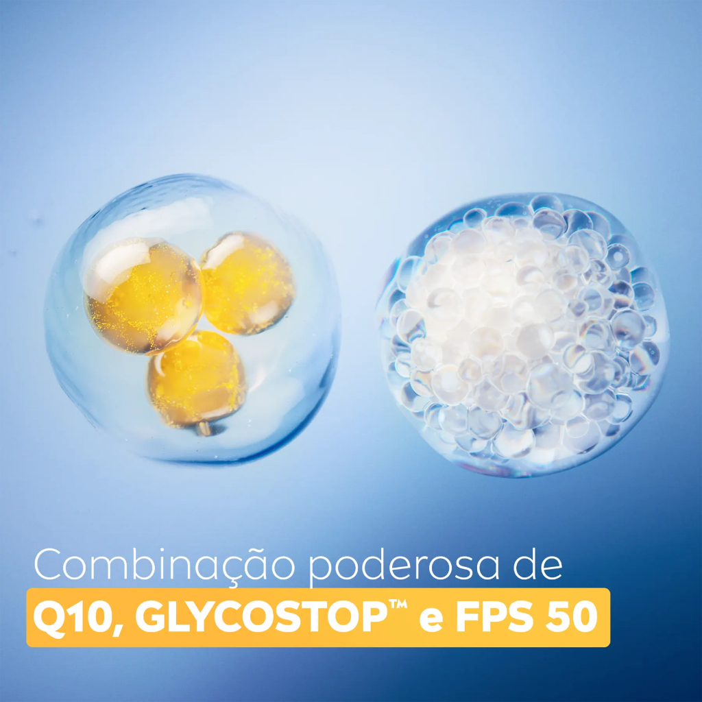 Fluido hidratante diário para todos os tipos de pele. NIVEA Q10 Antissinais Fluido UV Diário FPS 50 reduz rugas, previne a glicação e protege dos raios UV. NIVEA Q10 Antissinais Fluido UV Diário FPS 50 é um fluido diário com proteção UV que hidrata a pele e oferece defesa tripla contra rugas. Protege do sol e raios UV, evita o processo de glicação da pele e reduz rugas existentes. Com textura leve e fluida, sua fórmula possui uma poderosa combinação de FPS 50, Coenzima Q10 e GLYCOSTOP™, um ingrediente patenteado NIVEA que ajuda a proteger a pele dos danos causados pelo açúcar ne pele. Oferece hidratação e defesa tripla contra rugas, protege sua pele do sol e raios UV e reduz rugas existentes, enquanto previne o aparecimento de novas rugas causadas pelo processo de glicação da pele (excesso de açúcar). Benefícios e diferenciais: - Pele hidratada, macia e protegida desde o primeiro uso - Menos linhas finas e rugas após 2 semanas (teste de percepção) - FSP 50: Proteção do sol e raios UV - Textura sequinha, sem deixar o rosto pegajoso - Não deixa resíduo branco no rosto - invisível para todas as tonalidades de pele Modo de Uso Aplicar pela manhã com o rosto limpo. Funciona como primer se aplicado antes da maquiagem ou como sérum hidratante após sua rotina de cuidado facial. Evitar contato direto com os olhos.