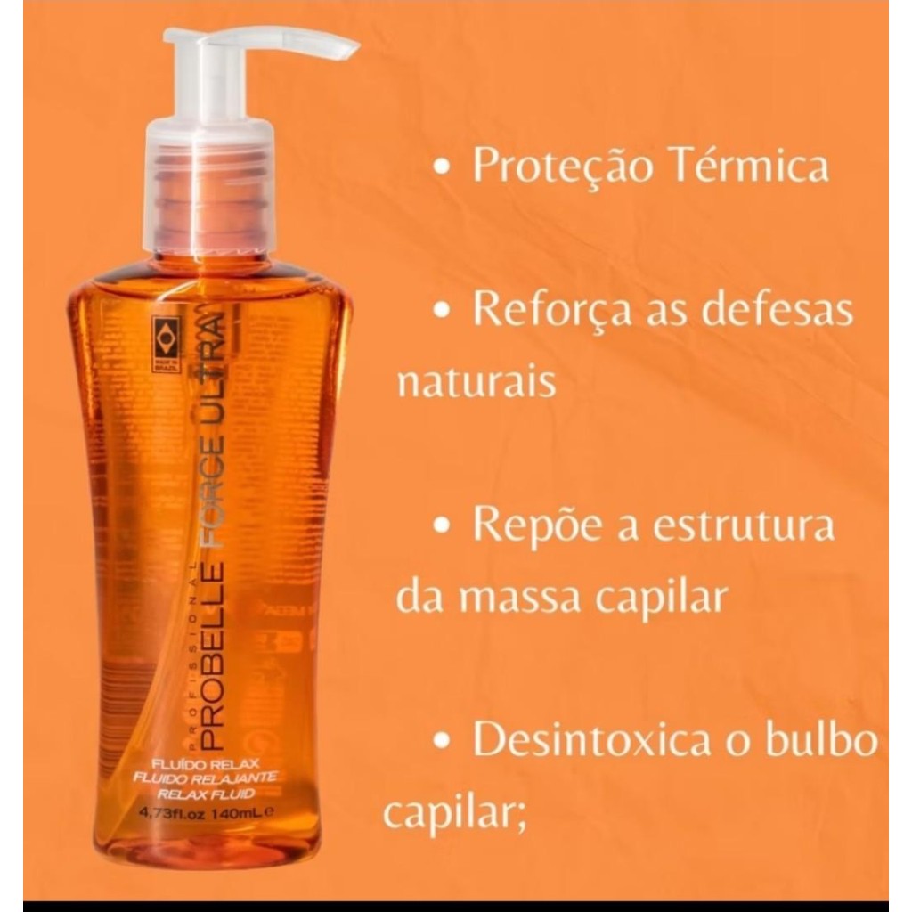 FLUIDO RELAX probelle super bonita Fluido Relax Volume em 140ml AÇÃO: Desenvolvido com silicones de última geração e enriquecido com queratina. Promove nutrição excepcional dos cabelos secos e muitos rebeldes, sem deixar aspecto pesado. RESULTADO: Devolve o movimento natural, com ação disciplinante de longa duração. Barreira anti umidade. Brilho sofisticado e efeito de longa duração. PH 4