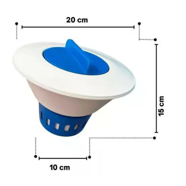 Clorador injetado em PS (Poliestireno), com tampa e cesto em PP (Polipropileno) para ser utilizado com tabletes ou pastilhas de 200g de Tricloro-S-Triazina-triona de baixa dissolução. O Clorador Alpha Netuno é fabricado com polímeros de alto padrão de qualidade. -Possui método de dosagem controlada através da abertura e fechamento das cavidades inferiores. -Possibilita o tratamento da piscina mesmo quando não houver a manutenção periódica fornecendo assim mais comodidade e segurança na qualidade da água.É necessário apenas manter -o acessório abastecido com as pastilhas de cloro e tem a capacidade máxima de 600g (3 pastilhas de 200g).Medidas Alt x Larg: 14cm x 19cm