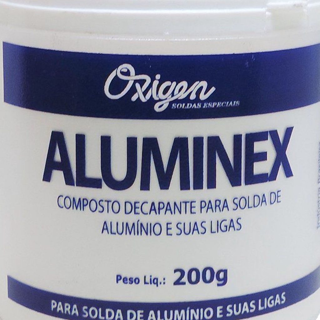 A fórmula do ALUMINEX contém elementos que removem efetivamente a película de óxido de alumínio e propiciam ótima fluidez do metal de adição, o que resulta em uma junta livre de poros e resistente. Os resíduos de fluxos pós-brasagem são corrosivos e devem ser removidos. Eles são solúveis em água e podem ser retirados com facilidade. Use adequadamente os EPI’s. Especificação Embalagem: Pote Conteudo: 200gr Itens Inclusos - 1 Fluxo para Solda de Alumínio Aluminex 200g Oxigen