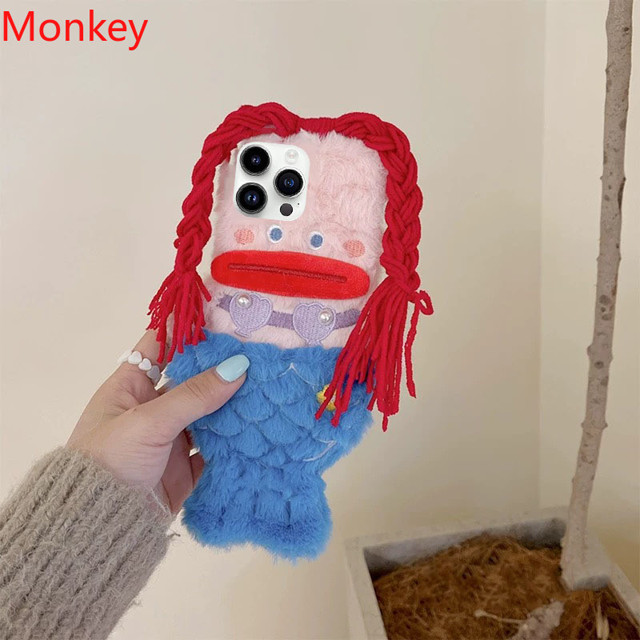 Capa de telefone para presente 3D pelúcia fofa pelúcia fofa e fofa para meninas sereia presente para iPhone 17 Air 16 Plus 15 14 13 12 11 Pro Max XS XR inverno cabelo capa macia Nota: O cabelo sereia enviado não é agrupado, e os amigos que compram podem empacotá-lo de acordo com suas próprias preferências