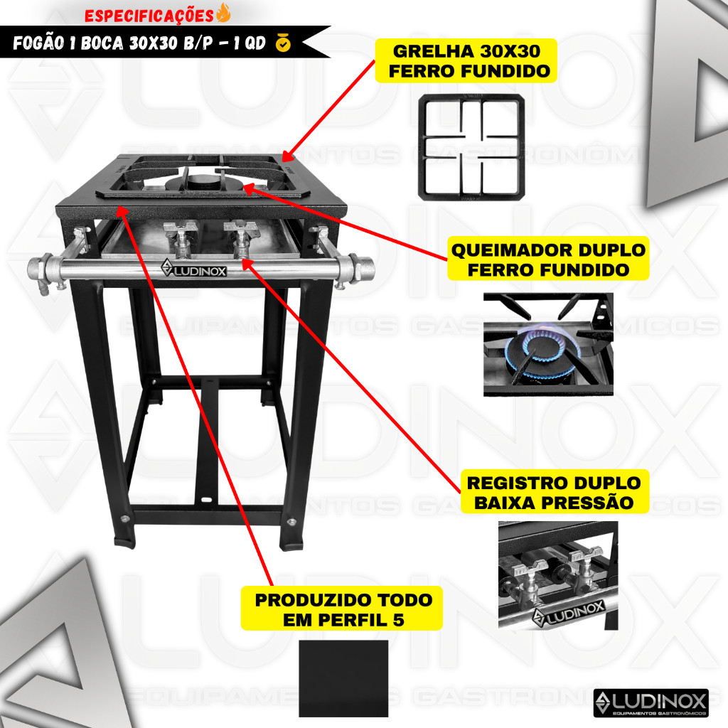 Fogão 1 Boca Dupla Industrial Baixa Pressão 30x30 Reforçado