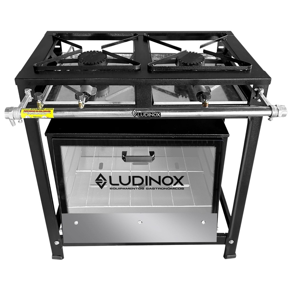 Fogão 2 Bocas Com Forno 60 Litros De Vidro Alta Pressão Industrial Ludinox