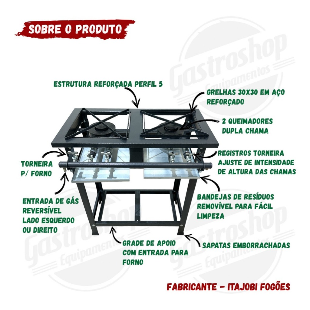 Fogão 2 Bocas Duplas Queimadores Duplos Industrial 30x30 Itajobi