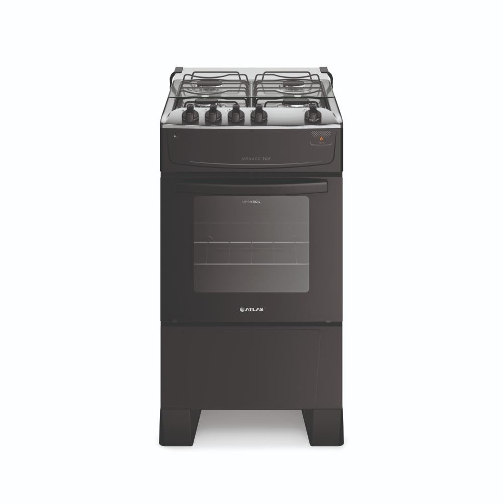 Fogão 4 Bocas a Gás Atlas Mônaco Top Forno 50L Preto Bivolt