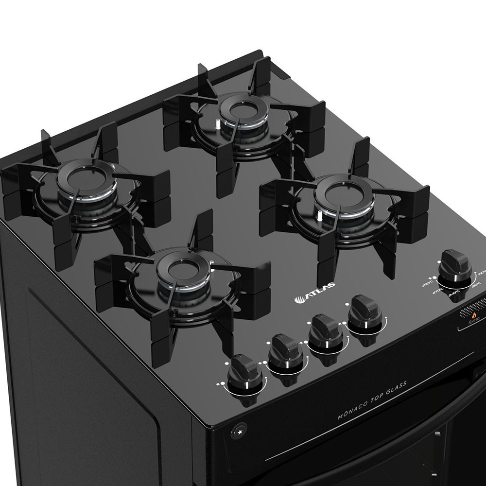 Fogão 4 Bocas à Gás Atlas Mônaco Top Glass Mesa de Vidro Preto Bivolt