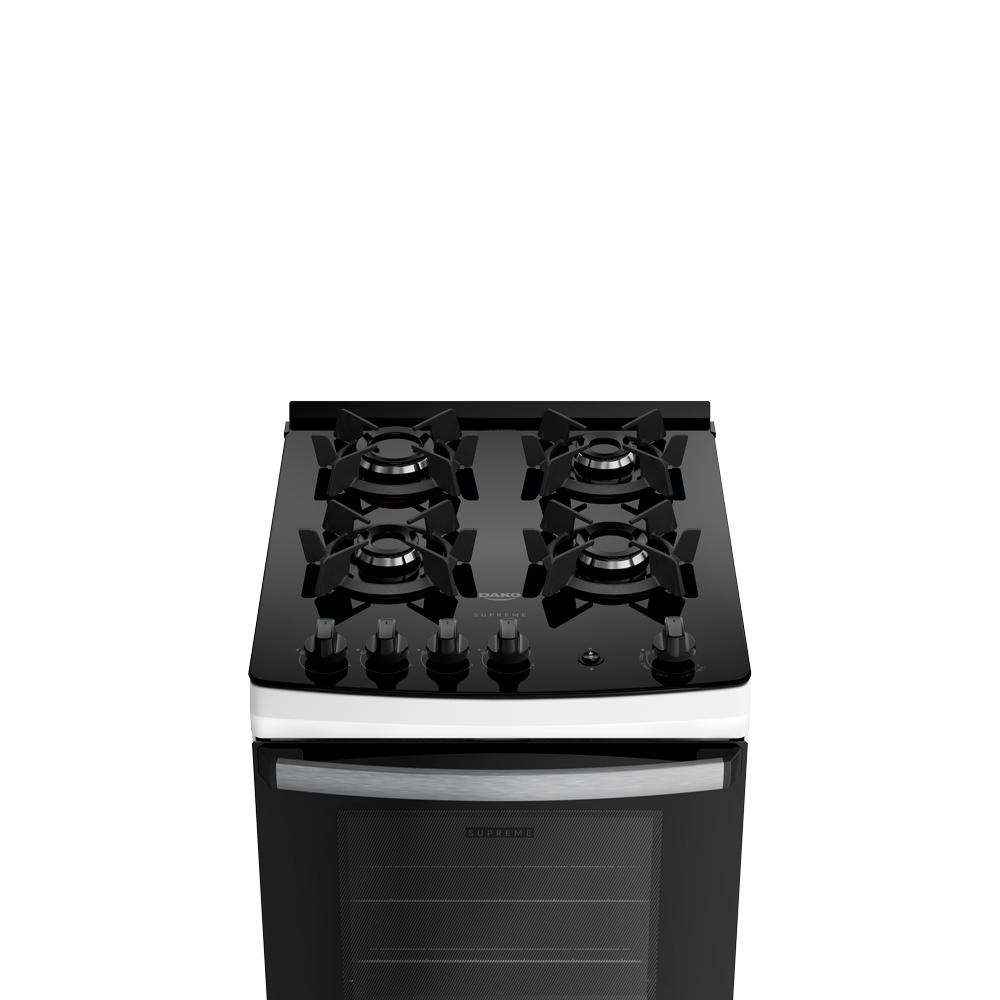 Fogão 4 Bocas a Gás Dako Supreme Glass Mesa de Vidro e Forno de 60L Bivolt Branco