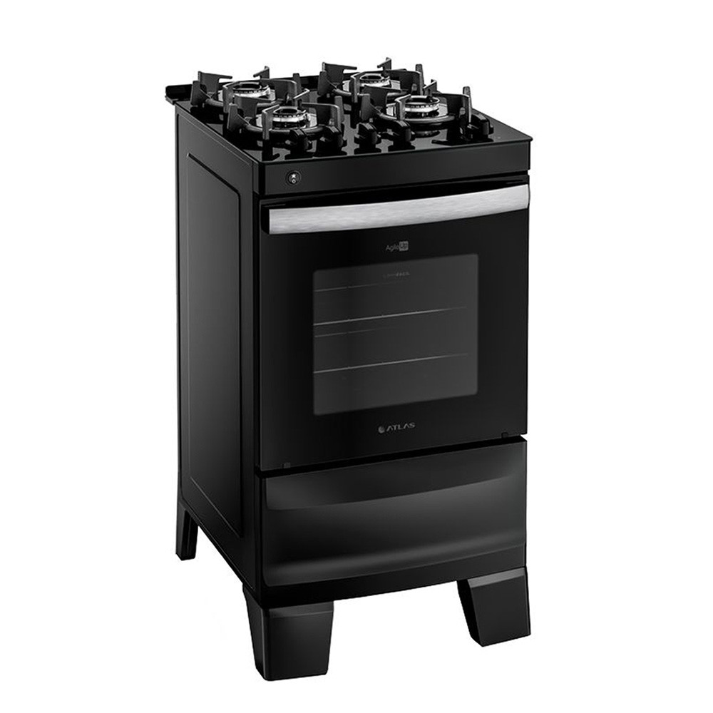 Fogão 4 Bocas Atlas Agile Up Glass com Mesa de Vidro e Acendimento Automatico Preto Bivolt