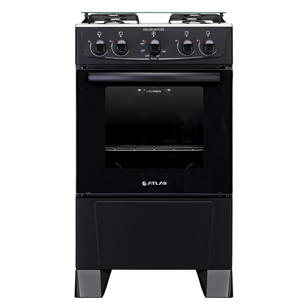 Fogão 4 Bocas Coliseum Plus com Forno Atlas 50 Litros Preto