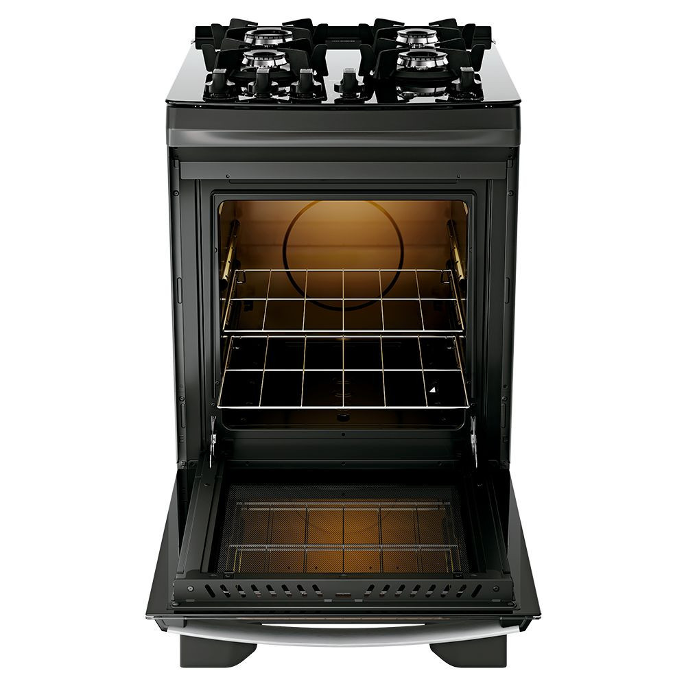 Fogão 4 Bocas Dako Supreme Glass, mantendo seu design compacto e funcional. O fogão Dako Supreme Glass, moderno e eficiente, é ideal para qualquer cozinha, com sua versão de 4 bocas e queimadores potentes. As grades individuais de ferro fundido oferecem estabilidade, enquanto o puxador em alumínio escovado adiciona sofisticação. A prateleira deslizante e o visor amplo do forno facilitam o uso, e o acabamento Limpa Fácil torna a limpeza simples. Características: Visor do forno amplo Puxador em alumínio escovado Design, conforto e segurança no manuseio diário Versão 4 bocas com Mega Chama e forno de 60L Grades individuais de ferro fundido com 6 pontos de apoio Mais estabilidade para as panelas. 2 prateleiras deslizantes Forno Limpa Fácil Isolamento térmico Impede a perda de calor Assa de maneira uniforme e economiza gás Lâmpada de forno Acendimento automático Inmetro:003853/2018 Dimensões: Altura: 94,1 cm Largura: 52,2 cm Profundidade: 64,9 cm Peso: 25,90 kg Garantia do fornecedor de 12 meses