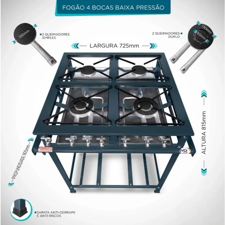 Fogão 4 Bocas Industrial Baixa Pressão Perfil 5 Com Grade 30 Cm Da Mr Fogões