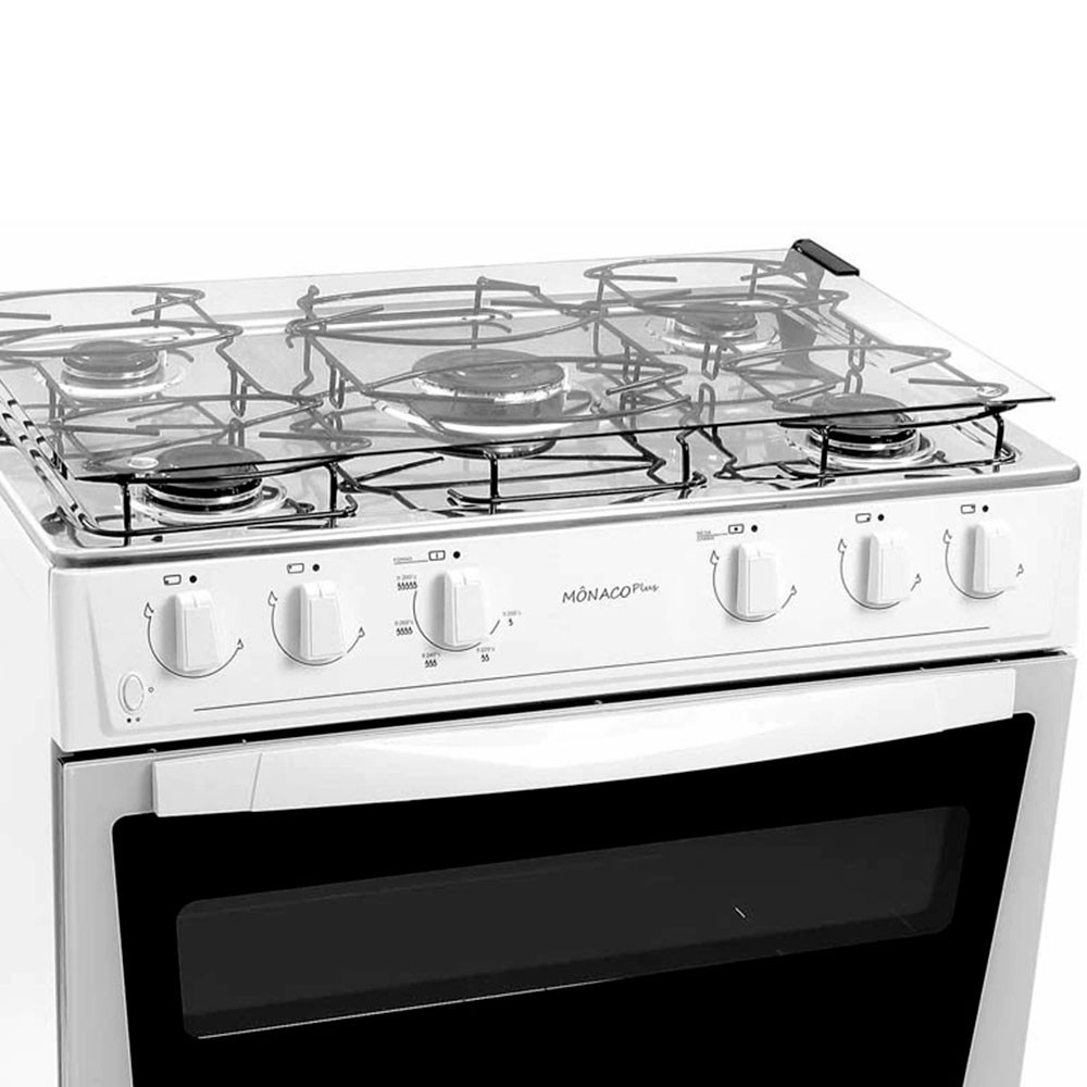 Fogão 5 Bocas à Gás Atlas Acendimento Automático e Forno Limpa Fácil Mônaco Branco Bivolt