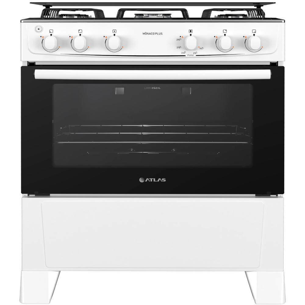 Fogão 5 bocas Atlas Mônaco Plus Branco com Acendimento Automático e Mesa Inox