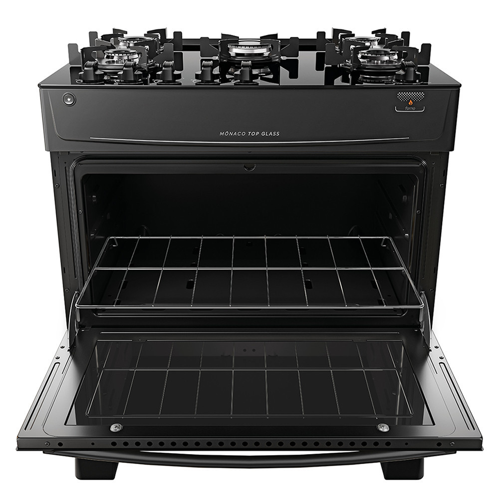 Fogão 5 Bocas Atlas Mônaco Top Glass Acendimento Automático Preto