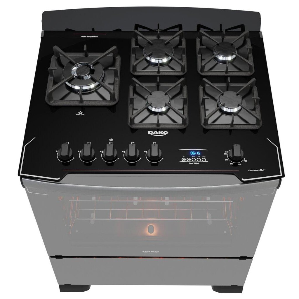 Fogão 5 Bocas Dako Diplomata Glass Grill Style Timer Bivolt