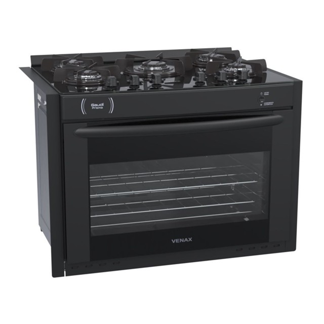 Fogão 5 Bocas de Embutir Venax Gaudi Prisma Vitreo Bl Gas Glp Preto