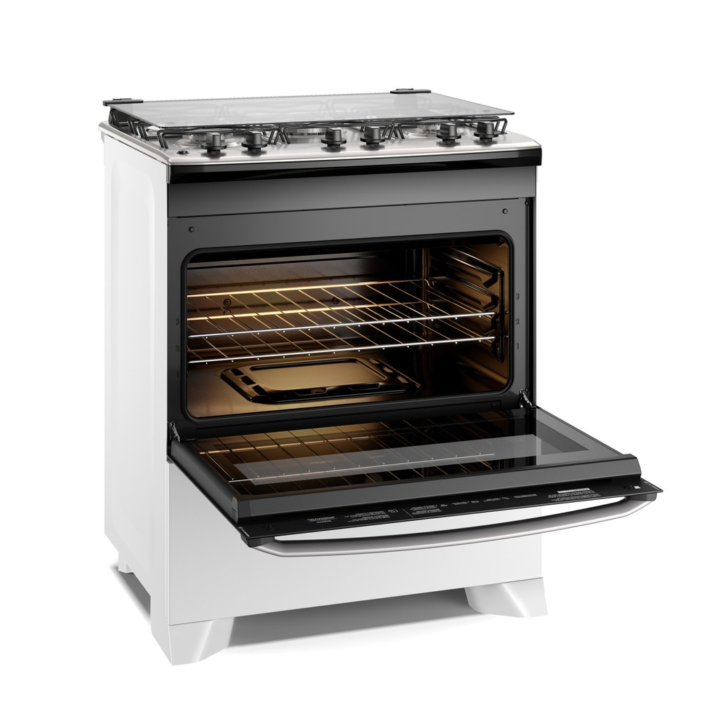 O Fogão 5 bocas Electrolux Branco Efficient Mesa Inox, PerfectCook e VaporBake®(FE5IW) possibilita menos esforço na hora de cozinhar e maior estabilidade das panelas. Com a Exclusiva Tecnologia PerfectCook, o forno possui melhor isolamento térmico no interior da cavidade selada e oferece maior controle de temperatura com menos perda de calor, reduzindo o tempo de cozimento dos alimentos em até 43%. Para que suas receitas fiquem ainda mais gostosas, você pode optar por cozinhar com o VaporBake® e conseguir, por meio da cocção a vapor, uma melhora de até duas vezes em aparência, crocância, textura e sabor em massas e pães. E quando você precisar apenas aquecer os pratos, basta usar o Regenerar a Vapor, que preserva o sabor e o aroma da comida sem ressecá-la. Para trazer mais velocidade no preparo das suas grandes receitas, nosso novo fogão tem a Tripla Chama, que deixa suas receitas mais homogêneas e saborosas. O design robusto da superfície da Mesa de Inox Compartimentada evita que líquidos escorram sob a mesa, permitindo uma limpeza profunda do fogão sem esforço. O Vidro Interno do Forno é removível e pode ser retirado com facilidade para garantir uma limpeza sem esforço e profunda do seu forno. Além disso, o forno do Fogão 5 bocas Electrolux Branco Efficient Mesa Inox, PerfectCook e VaporBake®(FE5IW) ainda conta com a Tecnologia FastClean, um revestimento que impede a penetração de sujeira, permitindo a remoção de gordura e resíduos de comida sem esforço, com 2 anos de garantia.