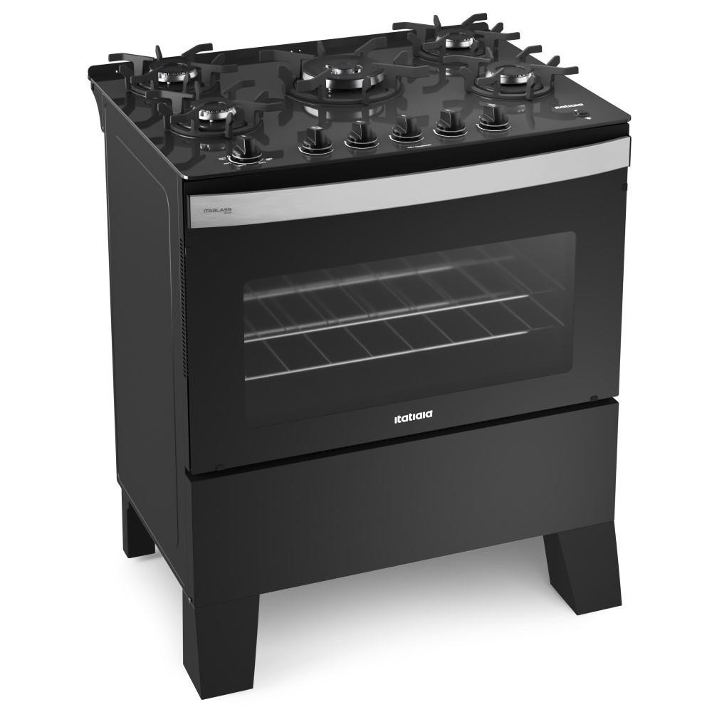 Fogão 5 Bocas Itatiaia Itaglass Plus Forno 82L Preto Bivolt