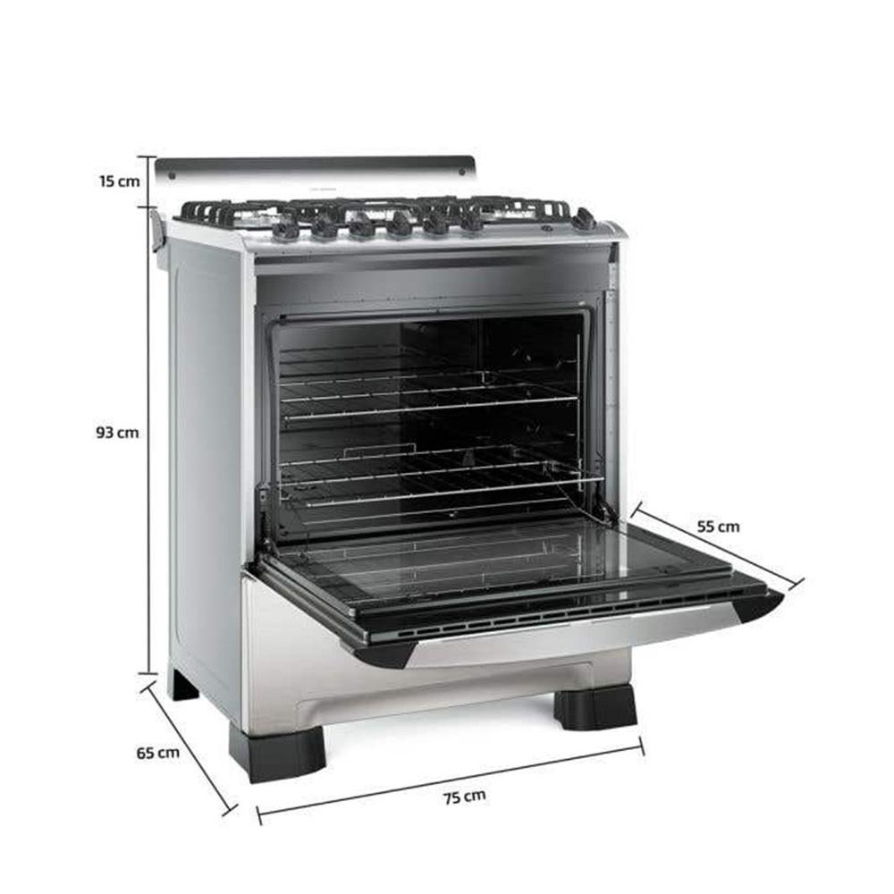 O Fogão 5 Bocas Decorato Gourmet da Mueller é perfeito para transformar sua experiência na cozinha, combinando funcionalidade e modernidade. Compatível com gás GLP (conversível para GN) e sua tensão bivolt, este fogão oferece flexibilidade e se adapta à sua instalação. Com um queimador tripla chama e um queimador dupla chama, proporciona potência excepcional para qualquer tipo de preparo. A mesa de inox escovado, adiciona um toque de sofisticação ao ambiente, além de também ser fácil de limpar, mantendo o fogão sempre impecável. O acendimento automático facilita a ignição das chamas, e suas grades de duplas de ferro fundido, garantem longevidade, suportando o uso frequente. Com sua proteção térmica e válvula de segurança no forno, garante tranquilidade a família. A belíssima cor Inox, confere um toque de modernidade e elegância ao ambiente. O Fogão da Mueller é a escolha ideal para quem busca um desempenho excepcional, não perca tempo e aproveite! Especificações: - Comprimento: 75 cm - Largura: 65 cm - Altura: 93 cm - Tipo de Gás: GLP (Conversível para GN) - Tensão: Bivolt - 1 Queimador Tripla Chama - 1 Queimador Dupla Chama - Mesa de Inox Escovado - Anteparo de Vidro Temperado - Acendimento Automático - Puxador de Alumínio Escovado - Luz no Forno - Forno com Válvula de Segurança - Volume do Forno: 98 Litros - Grades Dupla de Ferro Fundido - Botões Removíveis - Queimadores de Aço Esmaltado - Proteção Térmica no Forno - Fácil Limpeza - 5 Bocas - Cor: Inox - As configurações do seu monitor ou dispositivo móvel podem afetar a tonalidade da cor do produto. Conferir na descrição. - Produtos de Enfeite Não Estão Inclusos.