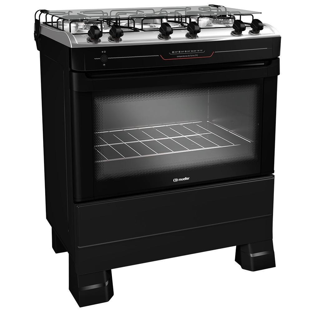 Novo fogão 5 bocas com queimador Tripla Chama. Mais rápido para cozinhar, mais tempo para saborear. Com o novo fogão Mueller 5 bocas com mesa de inox MFI5BF, cozinhar fica mais rápido e prático. A potência do queimador central Tripla Chama garante chamas fortes para receitas prontas em instantes, proporcionando mais tempo para saborear cada momento na sua cozinha. Quem valoriza tradição, qualidade e agilidade não precisa perder tempo procurando o fogão ideal. Escolha Mueller. INFORMAÇÕES TÉCNICAS Altura (cm): 93,5 cm Largura (cm): 75 cm Profundidade (cm): 58 cm Dimensões internas do forno: A: 30,5 x L: 64 x P: 41 cm Peso (kg): 26,4 kg Bocas: 5 Garantia: 12 meses Tipo do Fogão: A Gás, de Piso Mesa: Aço Inox Possui Tampa (tampo sobre a mesa): Sim Grades de mesa: 3 grades duplas em aço Botões: Removíveis e com anel vermelho Tipo de acendimento: Acendimento automático total Queimadores: Aço esmaltado com encaixe vedado à mesa Queimador Tripla Chama: 3.700 Watts de potência Queimador família: 2.000 Watts de potência Queimador médio: 1.700 Watts de potência Potência do queimador do forno (watts): 3.000 Watts de potência Luz no interior do Forno: SIM Acabamento do interior do forno: Total Clean Porta do Forno: Duplo vidro com proteção térmica Prateleiras do forno: Possui uma grade ajustável em dois níveis de altura Capacidade do Forno: 81,6 L Tipo de gás: GLP (Conversível para GN) Tensão: Bivolt Classificação Eficiência Energética: A IMPORTANTE Seu fogão é bivolt, mas a lâmpada do forno possui voltagem de 127V ou 220V. O forno virá sem a lâmpada, é necessário que você adquira a lâmpada, modelo E14 de 15W, de acordo com a voltagem de sua residência. Os fogões Mueller saem da fábrica regulados e preparados para funcionar com gás liquefeito de petróleo (GLP). Para a conversão do produto para Gás Natural GN é necessário solicitar o atendimento de um dos nossos postos autorizados. Assim que receber seu produto, entre em contato com o SAC Mueller e solicite sua conversão. Será necessário informar o número de série do produto. A conversão é gratuita dentro do prazo de garantia se o produto não tiver sido utilizado. Na hora de instalar seu fogão observe se o regulador de gás e mangueira estão dentro da validade. Confira o ano de vencimento gravado no regulador e também na mangueira. Eles não devem ser utilizados por mais de 5 anos. Ao comprar um regulador novo, observe a medida "kg/h". Reguladores de 1 kg/h são ideais para os tradicionais eletros de 4 bocas, já os de 2 kg/h são recomendados para eletros de 5 bocas ou com queimadores como o Tripla ou Dupla Chama.