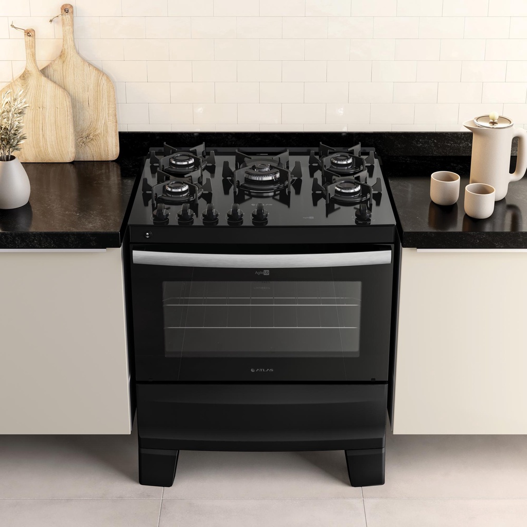Fogão 5 Bocas Preto com Mesa de Vidro Atlas Agile Up Bivolt