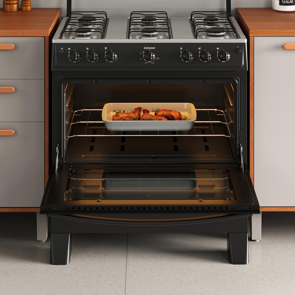 Fogão 6 Bocas a Gás Itatiaia Star New com Acendimento Automático e Forno 82L Preto Bivolt