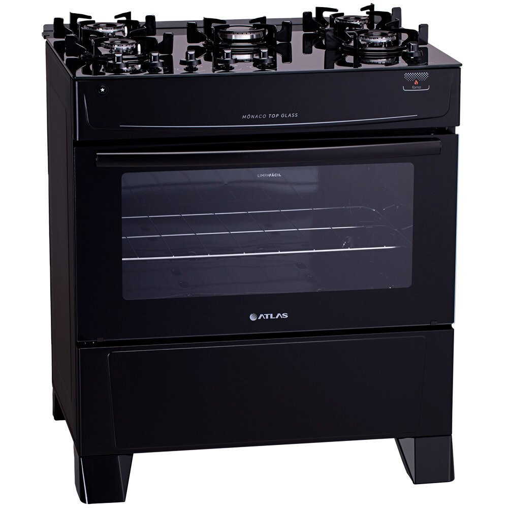 Fogão a Gás de Piso 5 Bocas Atlas Mônaco Top Glass Mesa de Vidro Preto