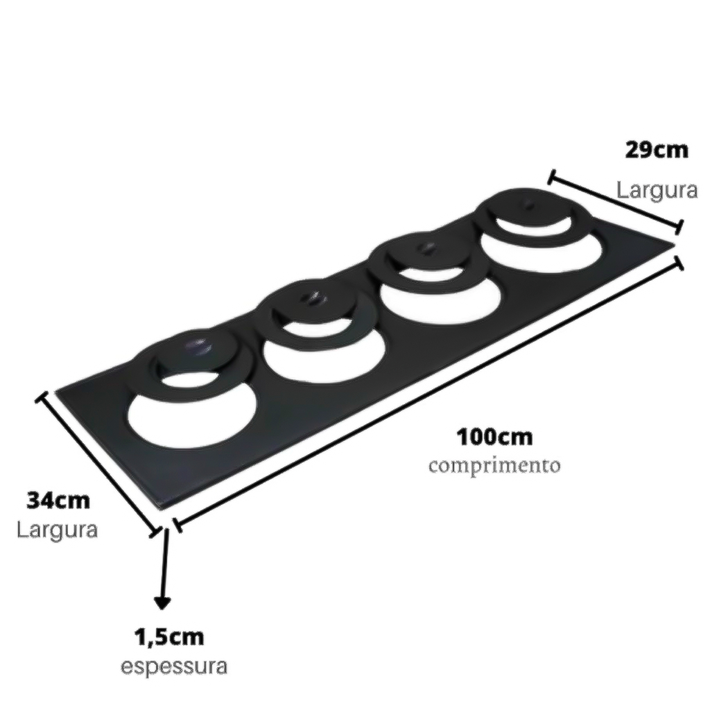 COMERCIAL VIPASA DISTRIBUIDORA. Fogão A Lenha 4 Furos Com Tampa Redução 91cm Chapa De Ferro Fundido Preto Fosco Roça Fazenda Fogão A Lenha 4 Furos Com Tampa Redução 91cm Chapa De Ferro Fundido Preto Fosco CHAPA DE FERRO FUNDIDO FOGAO A LENHA 4 FUROS C/ TAMPA E REDUCAO 91 X 3 A Chapa para fogão a lenha 4 furos com tampa e redução, deixará a sua cozinha muito mais bonita, esta chapa, é utilizada em ambientes rústicos que resgatam o típico clima aconchegante de fazenda, perfeita para a preparação de um almoço em família. Esta chapa proporciona aquecimento e constância na temperatura o que possibilita a preparação de pratos deliciosos em tempo ágil. São 4 bocas com redução acompanhada de 4 tampas em ferro fundido, por possuir redução você terá como regular de várias formas o volume da chama. Os principais benefícios de utilizar chapas de ferro para fogão a lenha são a durabilidade do material e o belíssimo acabamento campesino para sua cozinha. Sem contar a garantia que a Pollo Fundidos assegura em todas as suas linhas de produtos e utensílios para cozinha pensadas especialmente para você. Nossos produtos são de altíssima qualidade. Reserve no seu carrinho ou continue vendo mais opções na nossa loja. COMPRA PERMITIDA APENAS 1 UNIDADE POR COMPRA ESPECIFICAÇÃO DO PRODUTO Material: Ferro fundido Peso: 13.700 kg Quantidade de Furos: 4 Diâmetro Furos: 1- 17 cm/2- 20 cm/ 3- 21 cm/ 4- 22 cm Tamanho: largura 34 x l Largura 29 cm x comprimento91cm Conteúdo: 1 chapa,4 tampas, 4 reduções Garantia: 3 meses defeito de fabricação COMERCIAL VIPASA DISTRIBUIDORA.