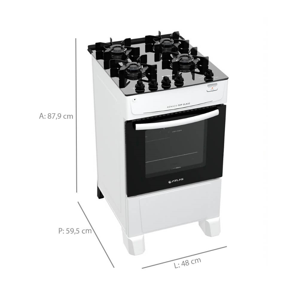 Fogão Atlas 4 Bocas Mônaco Top Glass Automático Mesa de Vidro Forno 50L