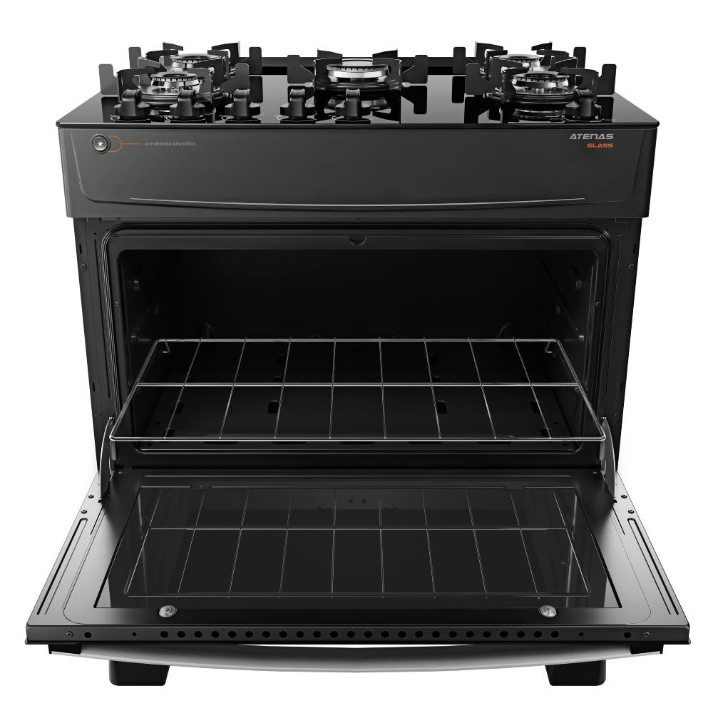 Fogão Atlas 5 Bocas Atenas Glass com Mesa de Vidro Bivolt