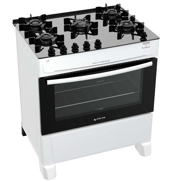 Fogão Atlas 5 Bocas branco Mônaco Top Glass com Acendimento automático - Bivolt