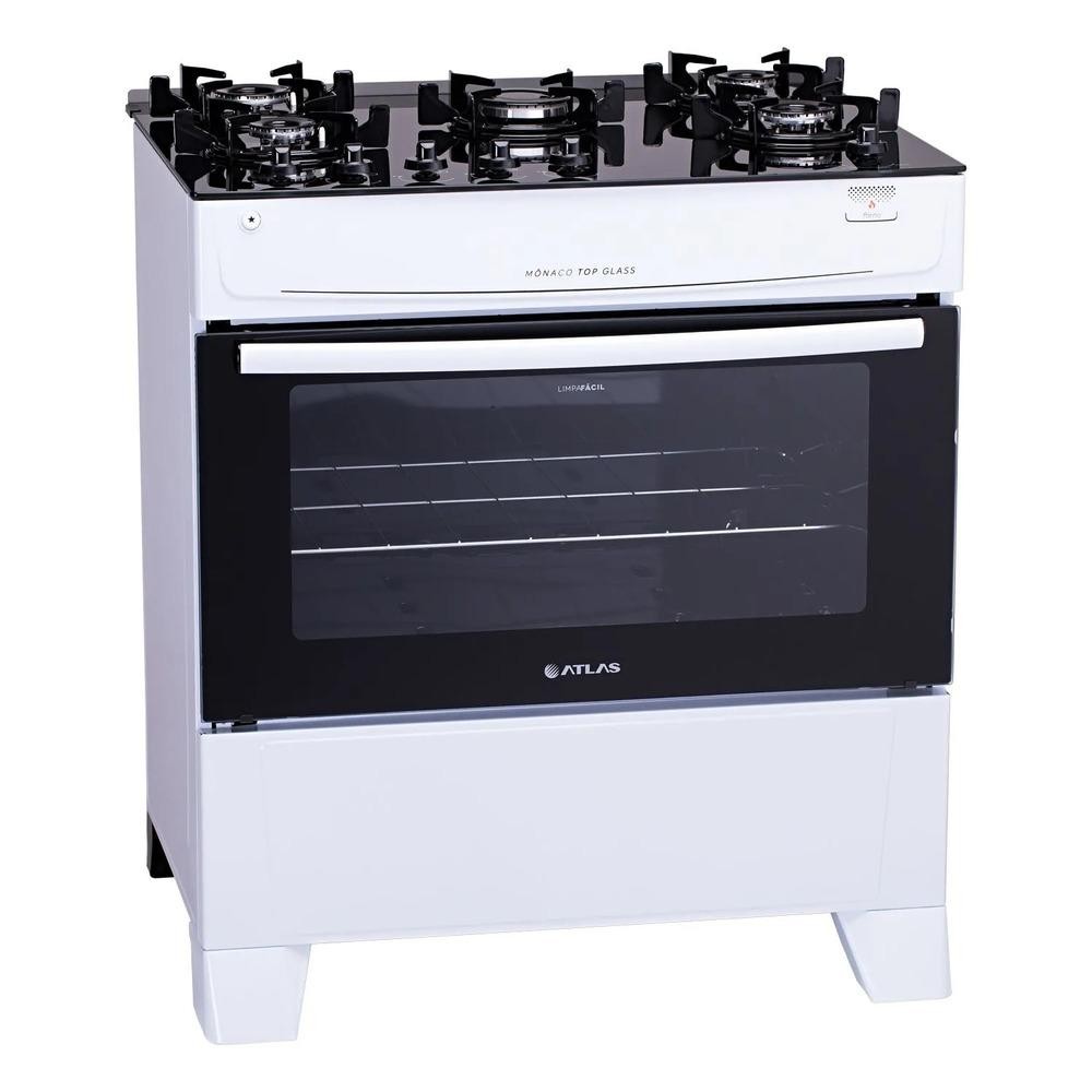 Fogão Atlas 5 Bocas com Mesa de Vidro Mônaco Top Glass Branco - Bivolt