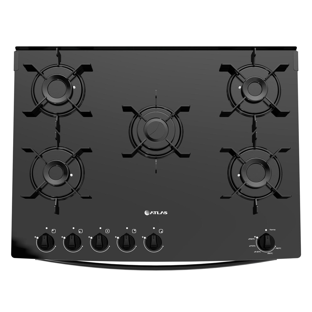 Fogão Atlas 5 Bocas preto Mônaco Top Glass com Acendimento automático - Bivolt