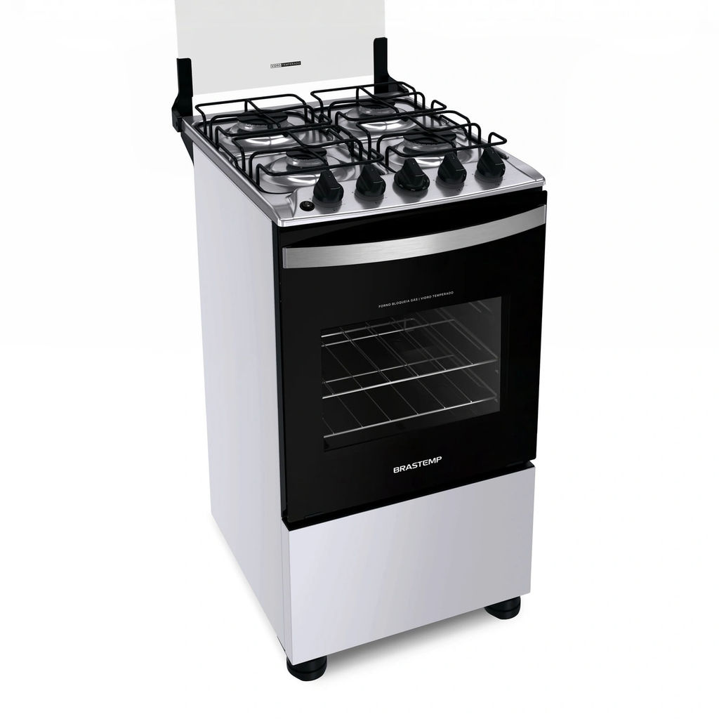 Fogão Brastemp 4 Bocas Branco com Duas Prateleiras com Alturas Ajustáveis - BFO4NBB