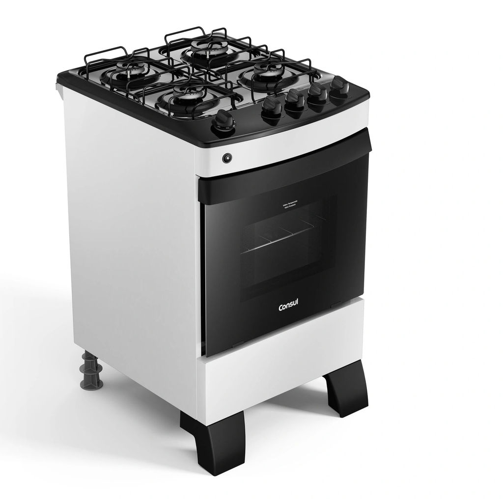 O novo fogão 4 bocas branco Consul combina praticidade e design. A mesa esmaltada é fácil de limpar e ajuda a evitar riscos, mantendo o produto com aparência de novo por mais tempo. Com forno de 58L – o maior do segmento – você tem mais espaço para preparar receitas, além de ter chamas bem distribuídas que garantem assados mais uniformes. As grades são até 3x mais resistentes, e oferecem mais firmeza mesmo com panelas pesadas. Os pés elevados facilitam a limpeza do chão, sem precisar mover o fogão.