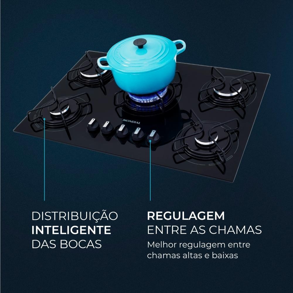 Fogão Cooktop 5 Bocas Gás Mondial CTG-03 Preto Inox Bivolt