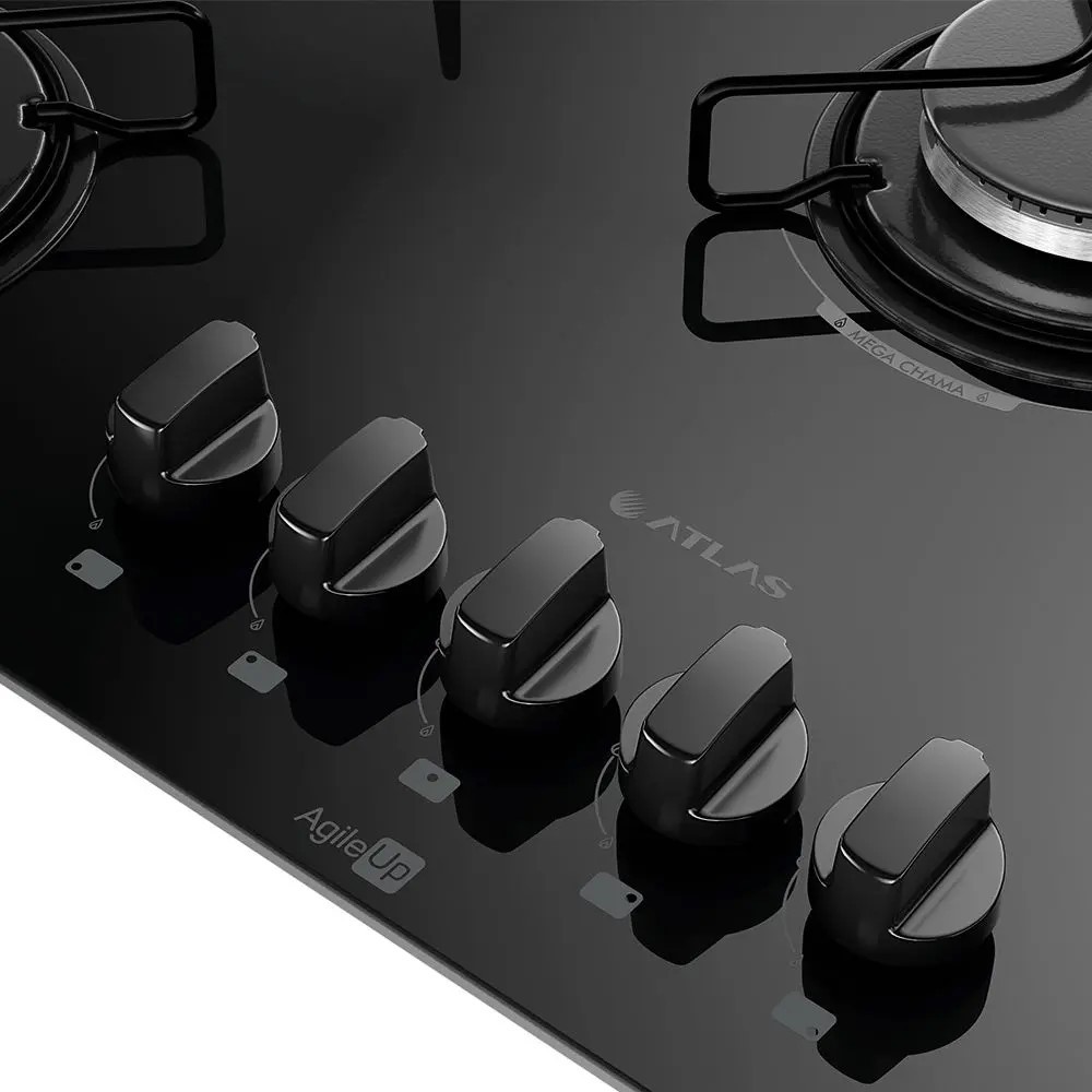 Fogão Cooktop 5 Bocas Mesa Vidro Atlas Agile Up Preto Bivolt