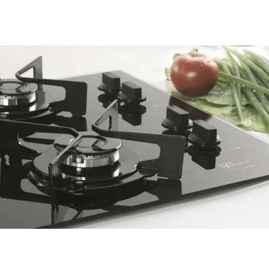 Fogão Cooktop Fischer 4 Bocas Fit Line Gás Mesa Vidro O Cooktop 4Q Fit Line, apresenta 4 queimadores, sendo 1 queimador rápido (3000W) e 3 queimadores semi-rápidos (1750W). O Cooktop é composto por mesa de vidro temperado na cor preta, trempes esmaltadas individuais com novo design e melhor assentamento da panela. Os suportes das trempes são em material easy clean na cor preta, queimadores com tecnologia italiana de alta eficiência e durabilidade e acendedor superautomático. Praticidade no uso e na limpeza. Charme e sofisticação sob medida para o seu ambiente. Diferenciais • Alta Performance Os queimadores possuem tecnologia italiana de alta eficiência e durabilidade. São 4 queimadores: sendo 1 queimador rápido(3000W) e 3 queimadores semi-rápidos(1750W). • Segurança e Praticidade A câmara de gás é fechada, portando a cama não se apaga com facilidade. Além disso possui acendimento superautomáico, acende com um simples girar do botão. • Novo Design As trempes com novo design e os manipuladores em nylon preto, agregam praticidade para o dia a dia sem abrir mão do estilo. • Acabameno A mesa do Cooktop é em vidro temperado na cor preta. E o suporte da trempe em easy clean preto. Detalhes e especificações técnicas - Mesa de vidro temperado na cor preta - Suporte da trempe em easy clean preto - Trempe individual com novo design, esmaltada - Manipuladores (botões) de nylon preto - Queimadores com tecnologia italiana de alta eficiência e durabilidade (SABAF) - 4 queimadores: 1 queimador rápido (3000W) e 3 queimadores semi-rápidos (1750W) - Câmara de gás fechada: a chama não se apaga com facilidade - Fundo compacto, otimiza o espaço do armário/nicho - Acendimento superautomático - Produto Certificado pelo INMETRO (Portaria 008) - Produto Bivolt Características Marca: Fischer Modelo: 26342-57175 Cor/Acabamento: Preto Quantidade de Bocas: 4 Bocas Potência: 2,54W em 127V / 2,35 em 220V Potência dos Queimadores: 8250w Consumo: 0,6001 kg/h Corrente:0,02 A (127V) - 0,01 A (220V) Pressão do gás: GLP 27,5 mbar = 2,75 kPa e GN 20 mbar = 2,0 kPa Acendimento: Superautomático Voltagem: Bivolt Peso e Dimensões Produto(A x L x C): 11,8 x 55,00 x 46,00 Cm Nicho de Instalação(L x P): 51,00 x 36,00 Cm Peso Líquido: 7,20kg Garantia Fabricante Garantia 1 Ano