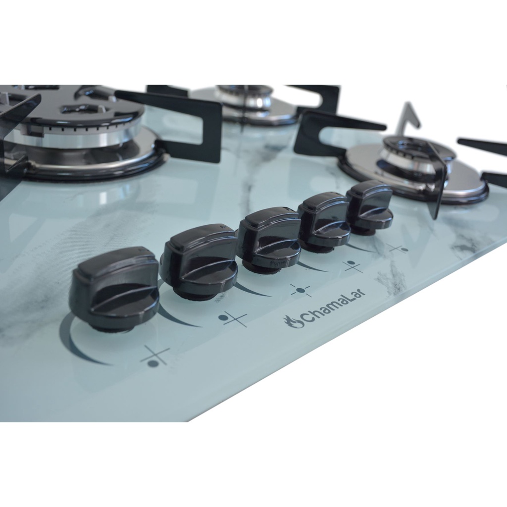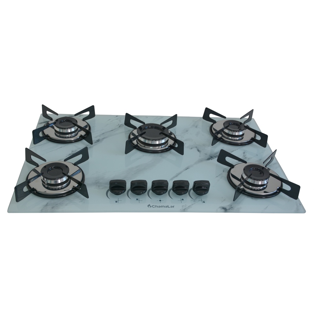 Fogão Cooktop Premium Gás 5 Bocas Ultra Chama 127v/220v Marmorizado Branco