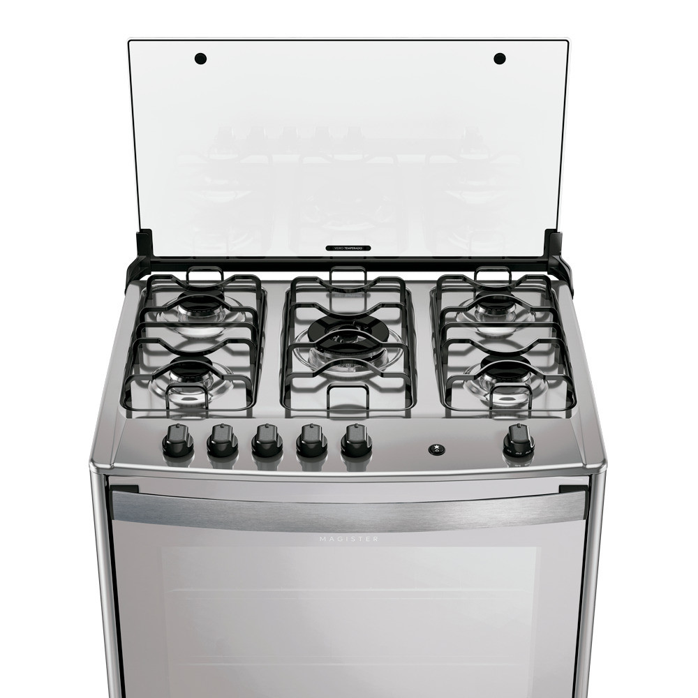 Fogão Dako Magister 5 Bocas Style Mesa de Inox a Gás Espelhado Bivolt