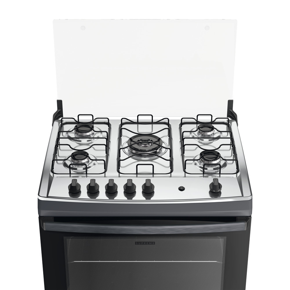 Fogão Dako Supreme Glass 5 Bocas a Gás Acendimento Automatico Titanium Bivolt
