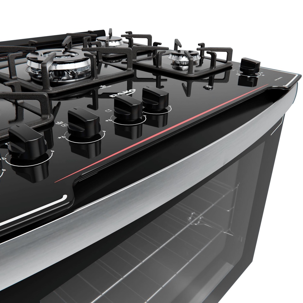 Fogão de Embutir 5 Bocas Preto com Mesa de Vidro Dako Diplomata Bivolt